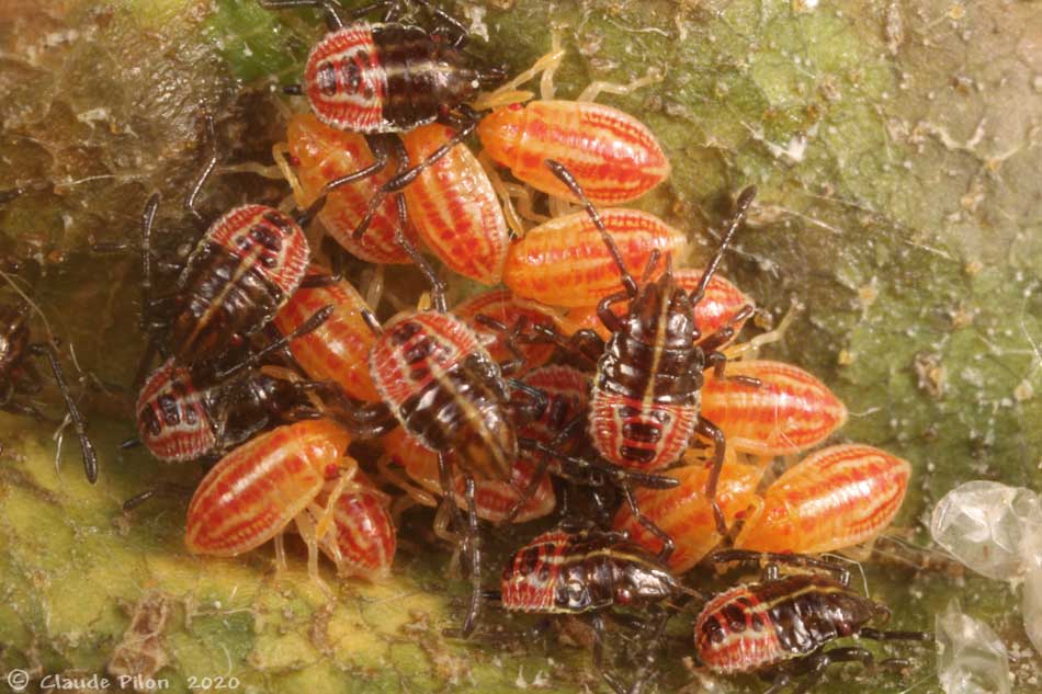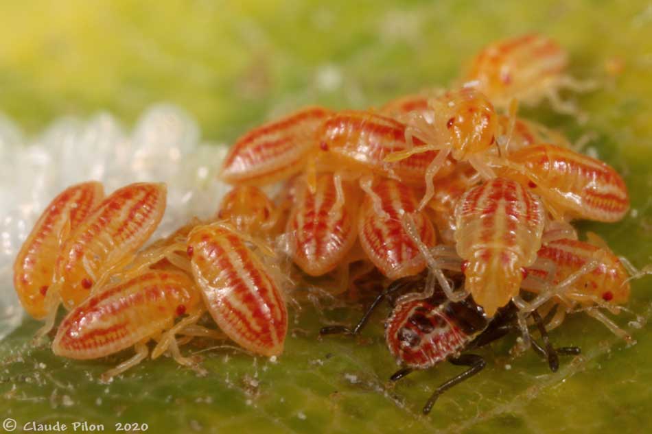 l'éclosion des oeufs, les nymphes se sont parfois regroupées et les